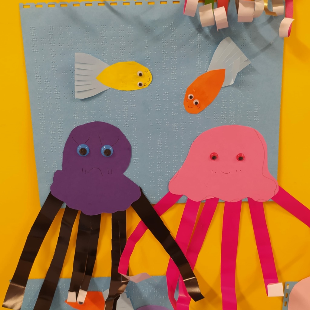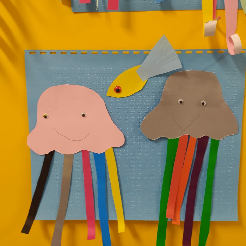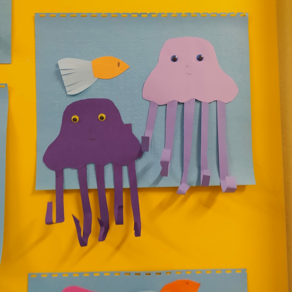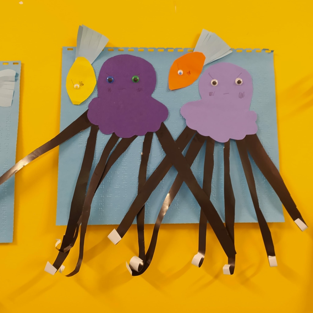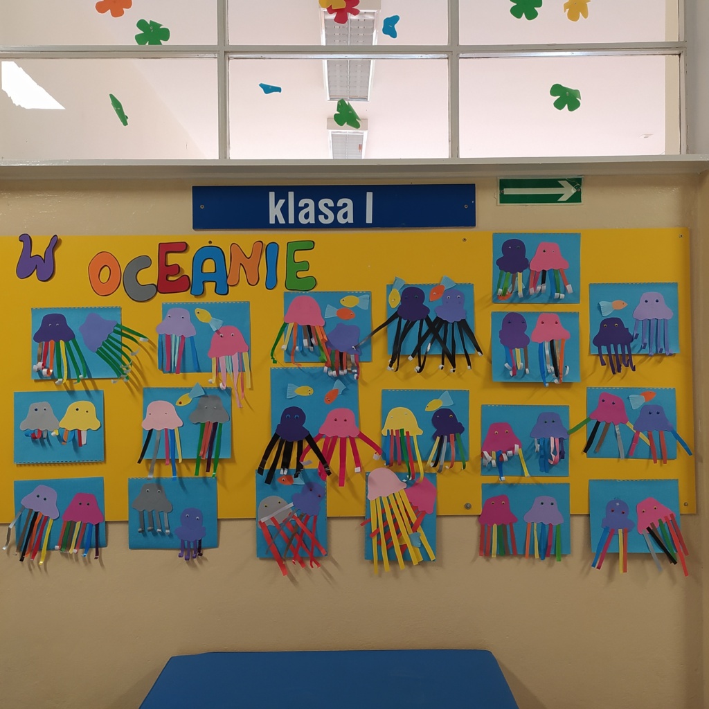 Dzieci z klasy 1a wspominały wakacje. Dowiedziały się wielu ciekawostek o życiu morskich stworzeń. Obejrzały film przyrodniczy pt.” Świat meduz”. Uczestniczyły w zabawach edukacyjnych z wykorzystaniem globusa i mapy świata. Wykonały pracę plastyczną pt.” Życie pod wodą”.