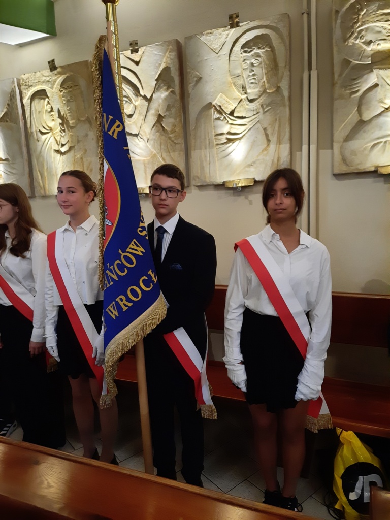 W dniu 14 września 2025 r. Poczet Sztandarowy Szkoły Podstawowej nr 71 im. Zesłańców Sybiru we Wrocławiu godnie reprezentował naszą społeczność szkolną podczas Mszy Świętej w intencji Ojczyzny oraz ofiar reżimów totalitarnych. Uroczystość miała miejsce w Sanktuarium Golgoty Wschodu przy ul. Wittiga we Wrocławiu.