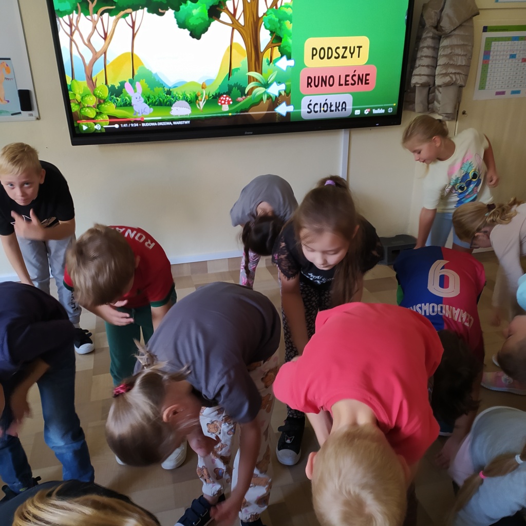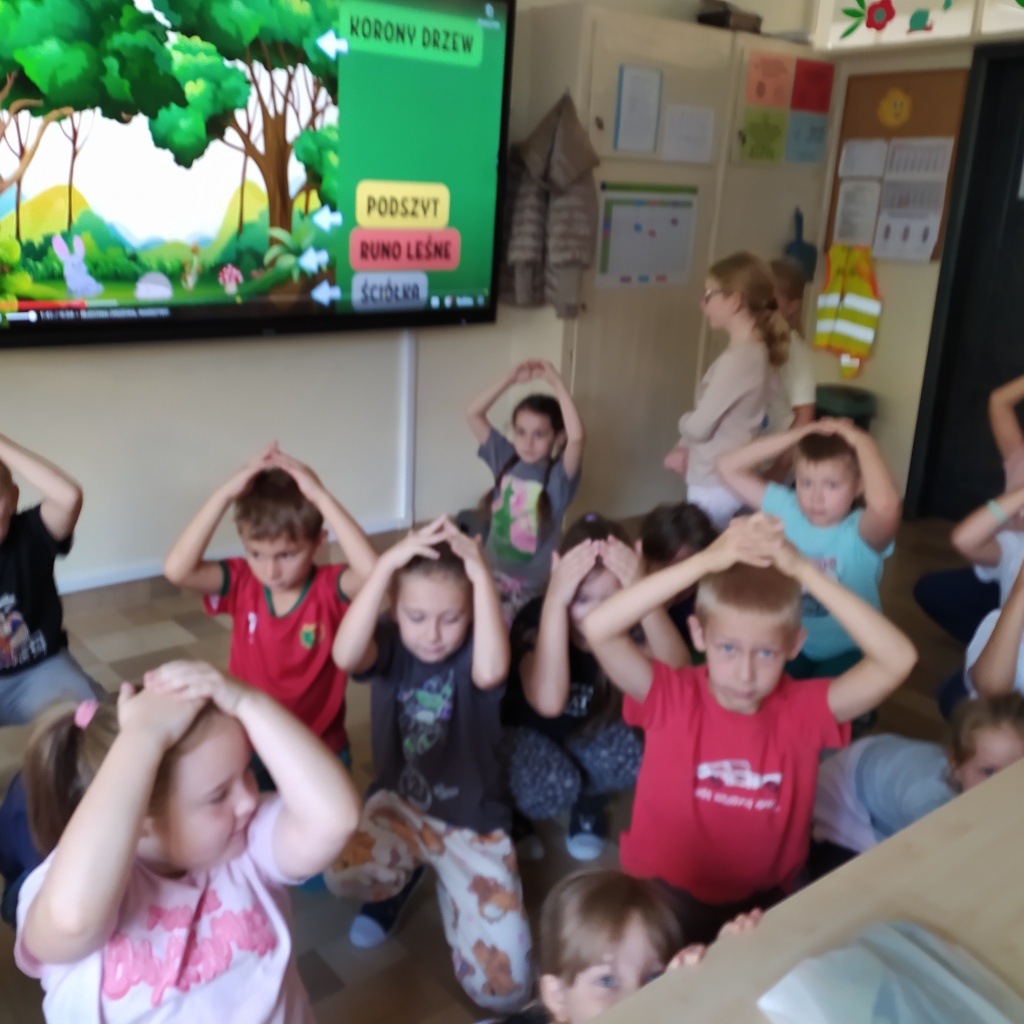 Edukacja w ruchu Na zakończenie zajęć dzieci przystąpiły do aktywności ruchowej przemieszczając się i naśladując zwierzęta żyjące w różnych warstwach lasu