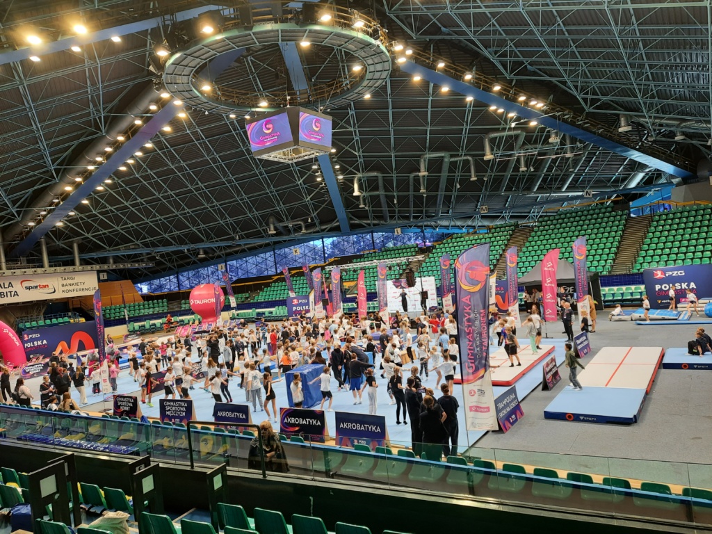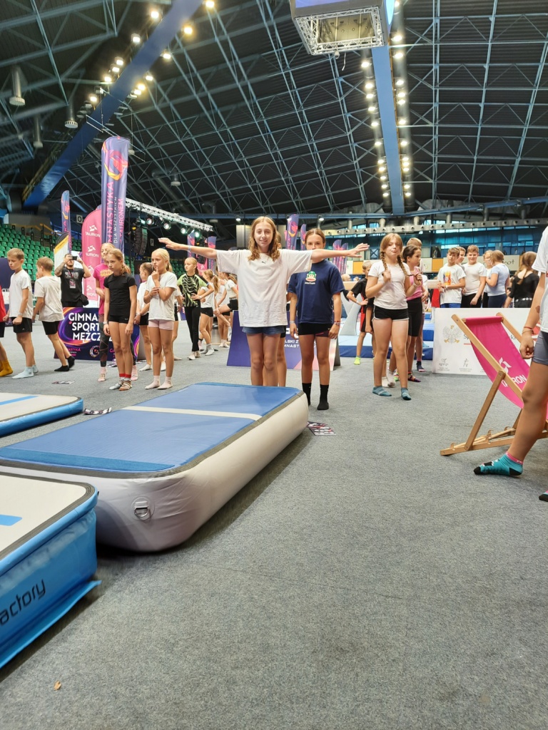 był niezapomnianym doświadczeniem pełnym ruchu, emocji i dobrej zabawy! Uczestnicy mieli okazję spróbować swoich sił w różnorodnych konkurencjach gimnastycznych – od skoków na trampolinie, przez elementy gimnastyki artystycznej, aż po podstawy akrobatyki i gimnastyki sportowej. Każdy, niezależnie od poziomu zaawansowania, mógł znaleźć coś dla siebie i rozwijać swoje umiejętności pod okiem doświadczonych instruktorów.