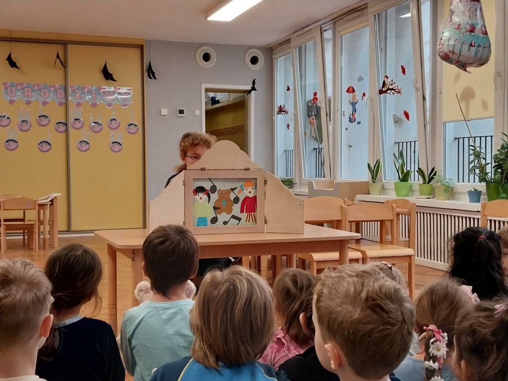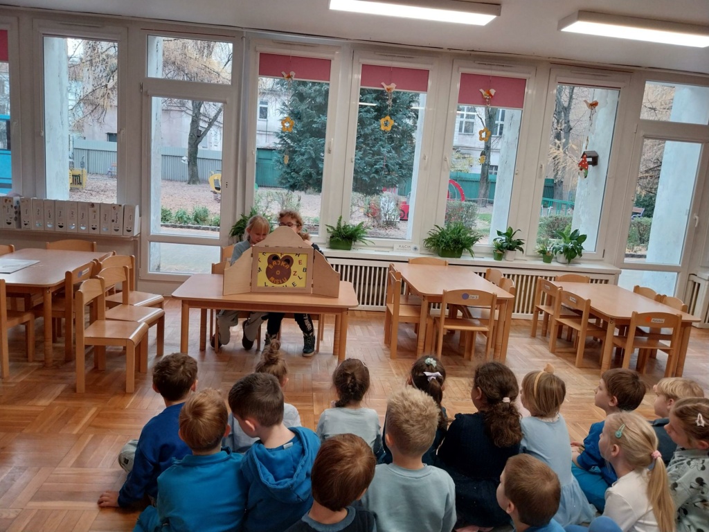 Z okazji Światowego Dnia Pluszowego Misia uczennice z klasy: 3a, 3b i 6a: Pola Kryszk, Ania Warchoł, Natalia Wojciechowska, Magda Korycka, Milena Zielonka, Alicja Kryszk i Wiktoria Kalinowska zaprezentowały w Przedszkolu nr 43 przy ul. Kościuszki 27a bajki o misiach w formie teatrzyku Kamishibai: „Wesołe święta z niedźwiadkami”, „Przygoda misia”, „Bajka o misiu”, „Czarny miś”. Spektakle obejrzały cztery grupy przedszkolaków, które z uwagą śledziły losy pluszowych misiów. Dziewczynki zostały obdarowane przez Dyrekcję Przedszkola drobnymi upominkami. Przedszkolakom teatrzyki się podobały i z niecierpliwością czekają na kolejne spektakle.