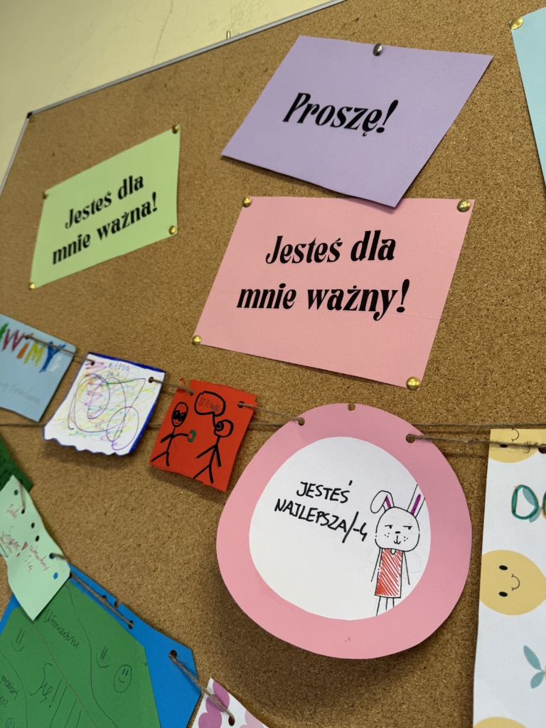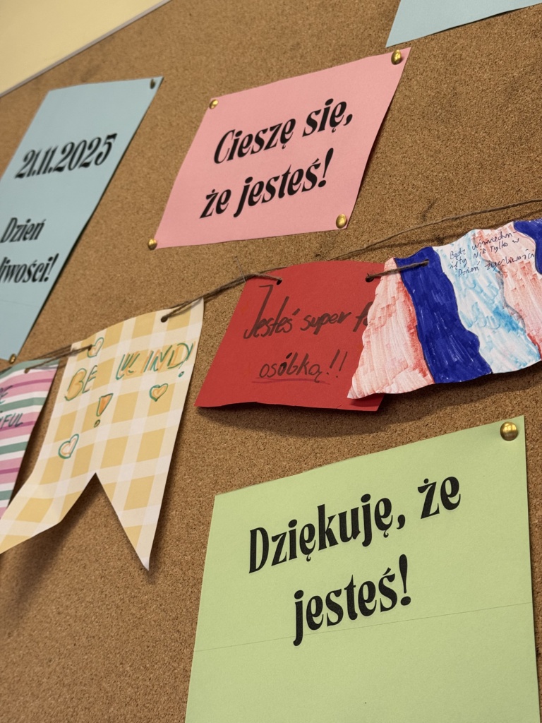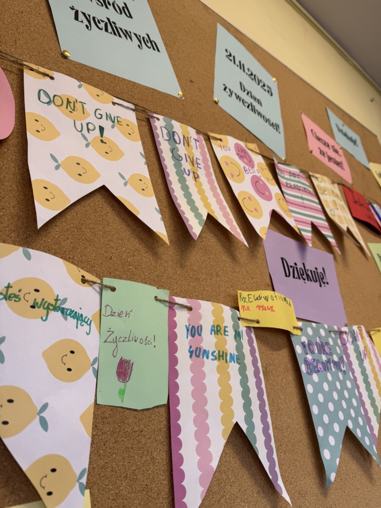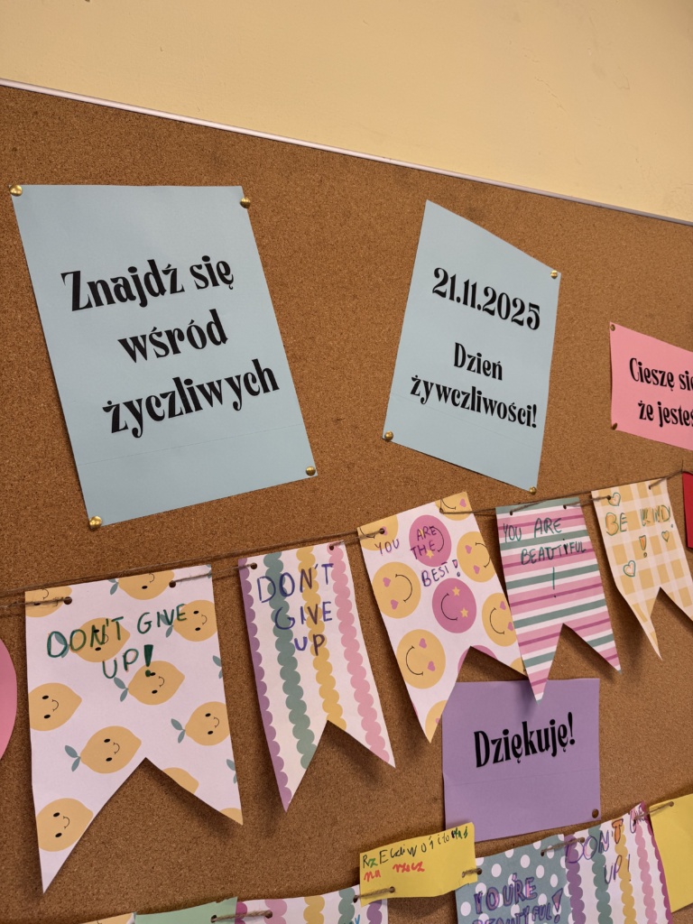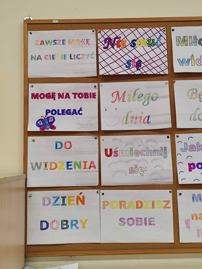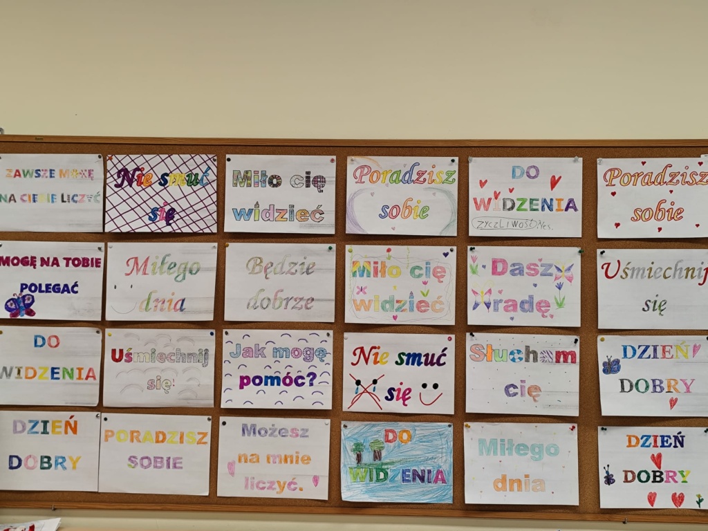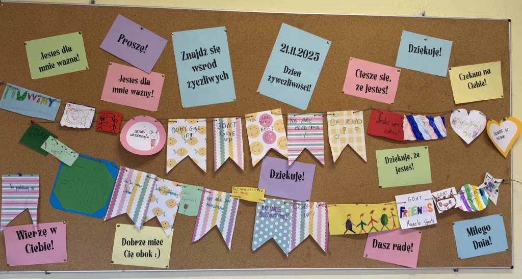 Z tej okazji powstały wyjątkowe tablice pełna życzliwych słów. Uczniowie z zaangażowaniem stworzyli kolorowe hasła, które przypominają, jak ważne jest okazywanie sobie serdeczności na co dzień.