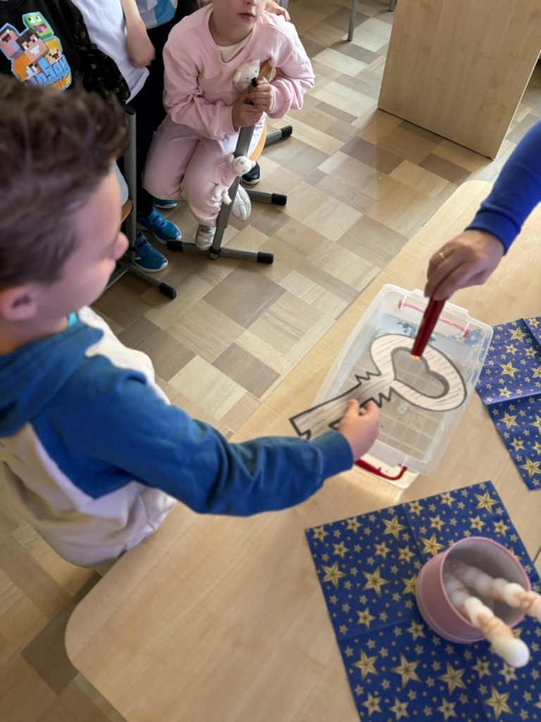 W piątek 28 listopada w klasie 1a odbyły się tradycyjne wróżby i wesoła zabawa przy muzyce. Katalog wróżb był obszerny i bogaty, a każdy pragnął wywróżyć sobie coś wyjątkowego.  Nie zabrakło  lania wosku, losowania kolorowych kart, na których widniały nazwy zawodów przyszłości. Najwięcej emocji i radości  sprawiło dzieciom przekuwanie szpilką papierowych serc, aby odczytać imię swojej sympatii. Wszyscy wspaniale się bawili, humory dopisywały, a słodki poczęstunek przygotowany przez rodziców umilił nam czas.