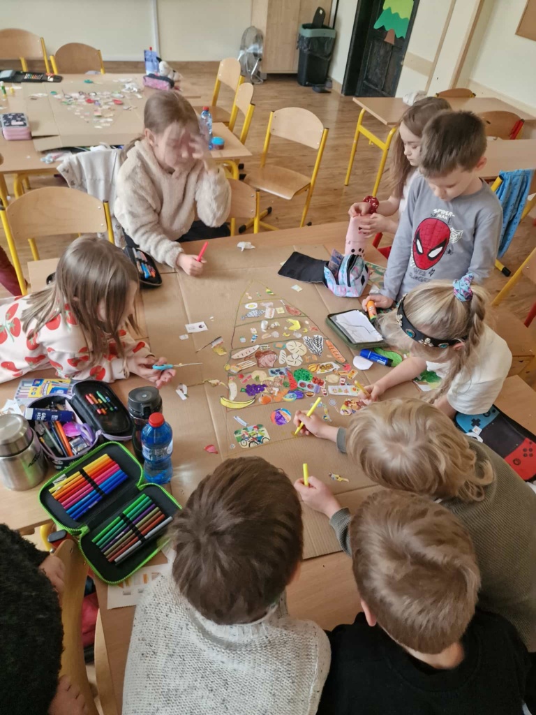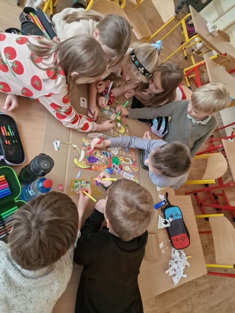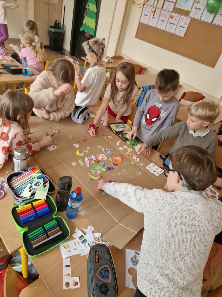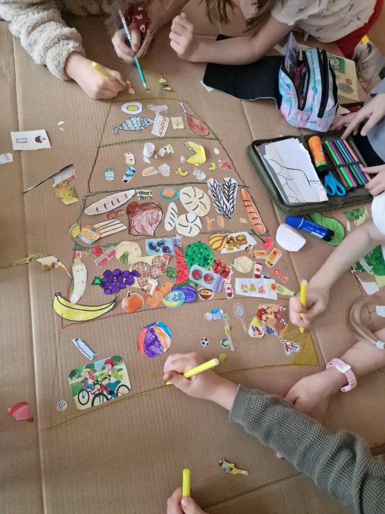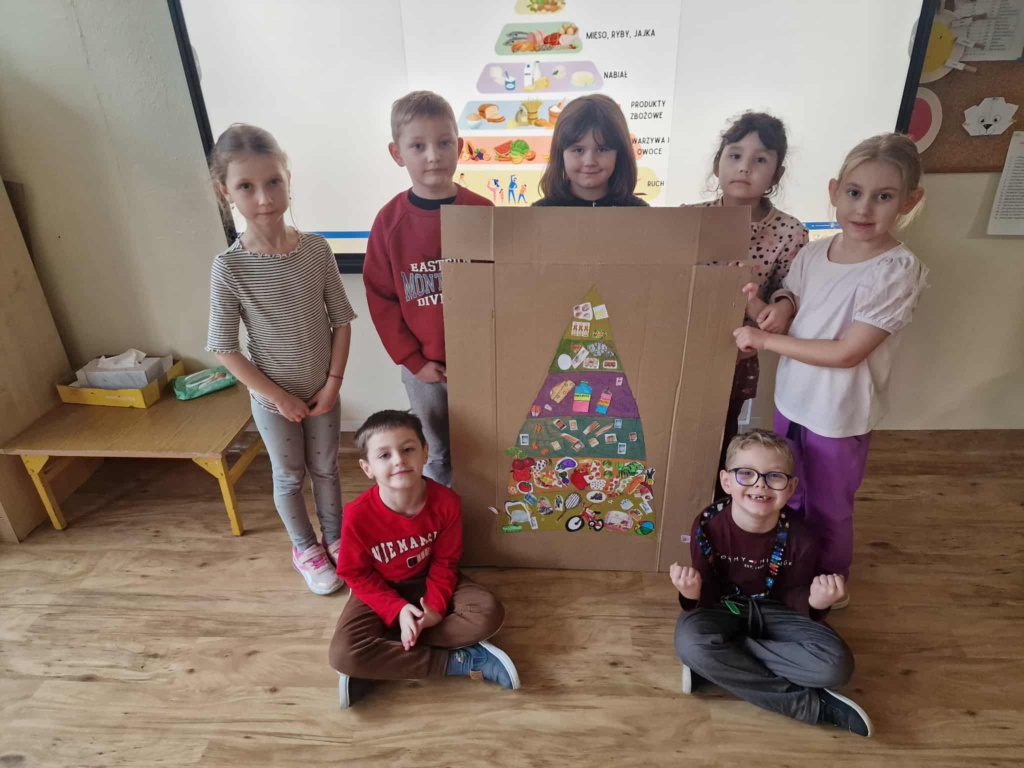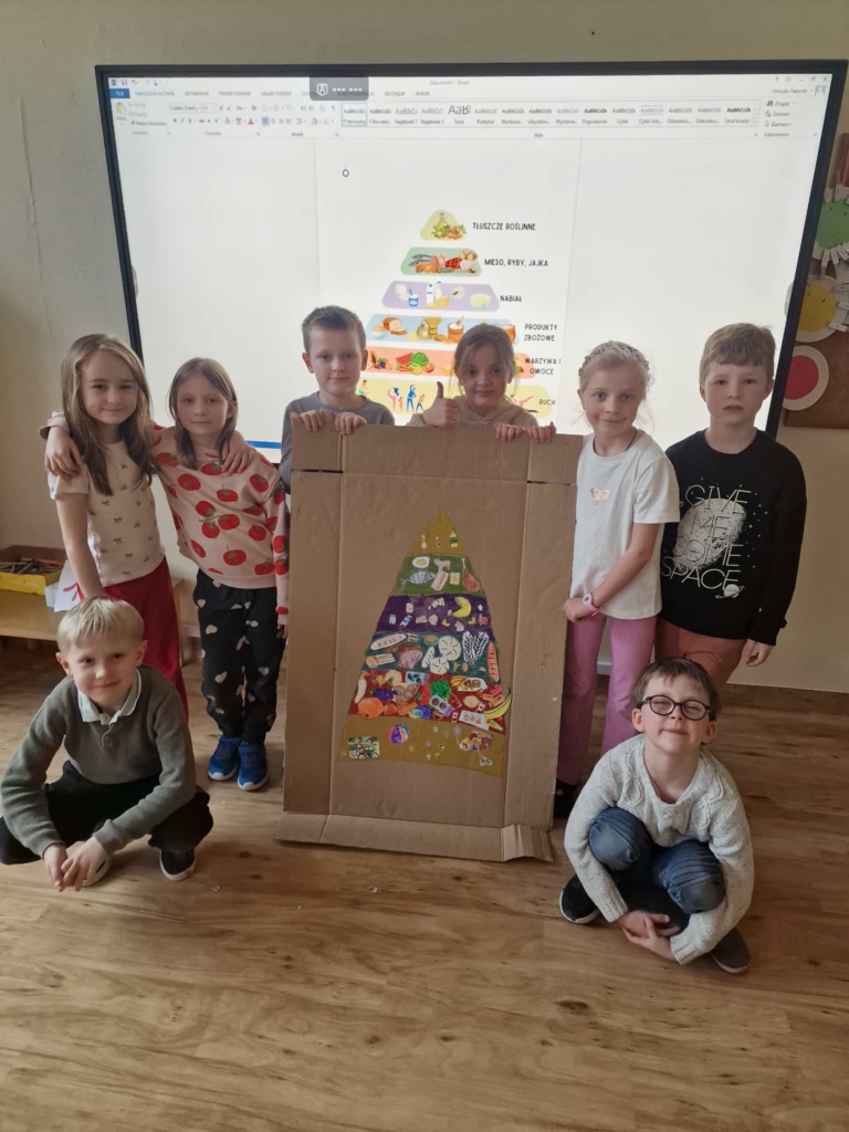 Dziś (2 grudnia) uczniowie klasy 1b wzięły udział w wyjątkowych zajęciach poświęconych zdrowemu odżywianiu. Podczas spotkania dowiedziały się, jak ważna jest zrównoważona dieta i jak codzienne wybory żywieniowe wpływają na nasze zdrowie i samopoczucie. Wspólnie poznaliśmy piramidę żywieniową – dzieci dowiedziały się, które produkty powinny stanowić podstawę ich diety, a które warto spożywać z umiarem. Na zakończenie zajęć uczniowie, pracując w grupach, stworzyli własne piramidy żywieniowe. Wykazali się przy tym ogromną kreatywnością i wiedzą! Kolorowe prace ozdobiły nasz korytarz i przypominają nam, że zdrowe jedzenie może być nie tylko pożywne, ale i bardzo ciekawe!