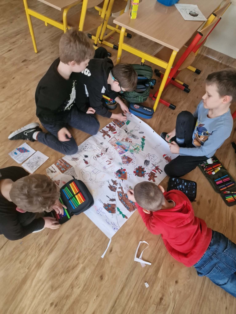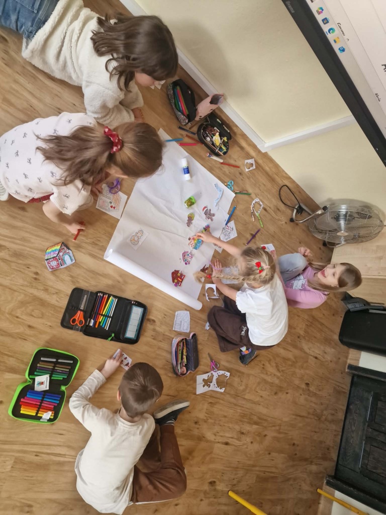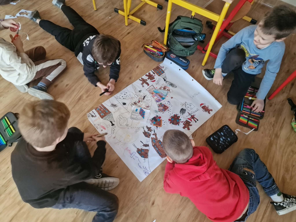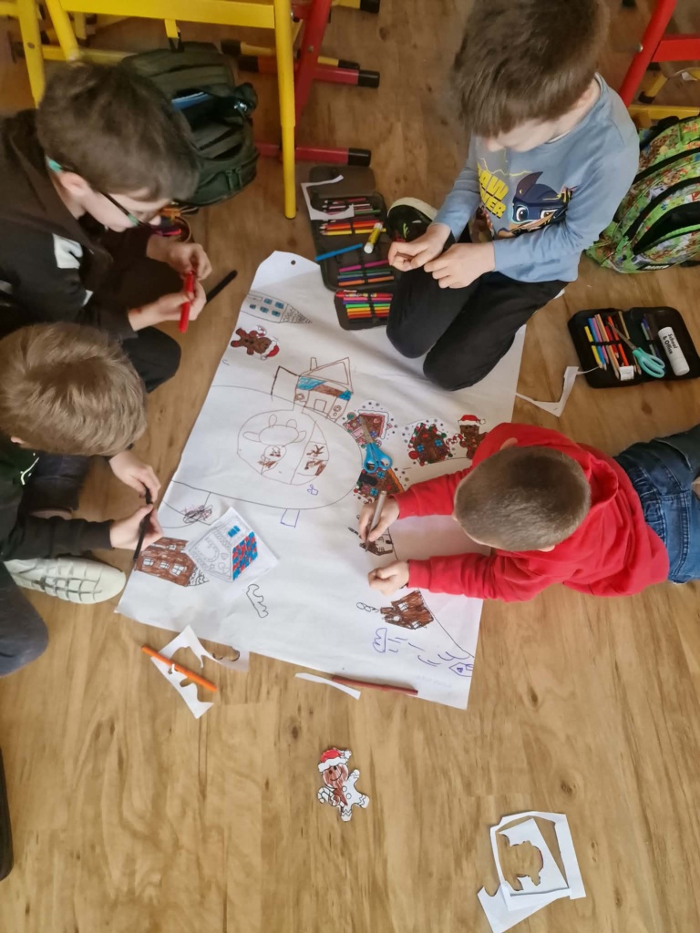 W naszej sali zapanował prawdziwie świąteczny klimat! Dzieci stworzyły niezwykłą Piernikową Wioskę – ale tym razem… z papieru! Zamiast pieczenia, sięgnęliśmy po kredki, nożyczki, klej i ogromne pokłady kreatywności. Każde dziecko zaprojektowało swój własny domek – inspirowany piernikowymi wypiekami, ozdobiony lukrowymi wzorami, kolorowymi cukierkami i śnieżnymi dachami. Powstały urocze chatki, choinki, płotki i ścieżki – wszystko ręcznie wykonane i złożone w jedną, wspólną wioskę. To była nie tylko zabawa plastyczna, ale też okazja do rozmów o tradycjach, współpracy i magii wspólnego tworzenia. Nasza papierowa wioska wygląda jak z bajki – i przypomina, że najpiękniejsze rzeczy powstają z serca i wyobraźni ![]()