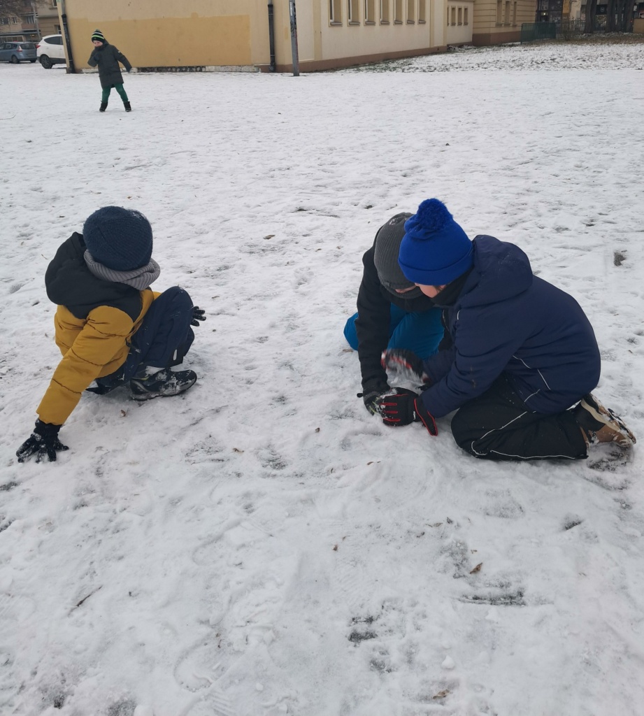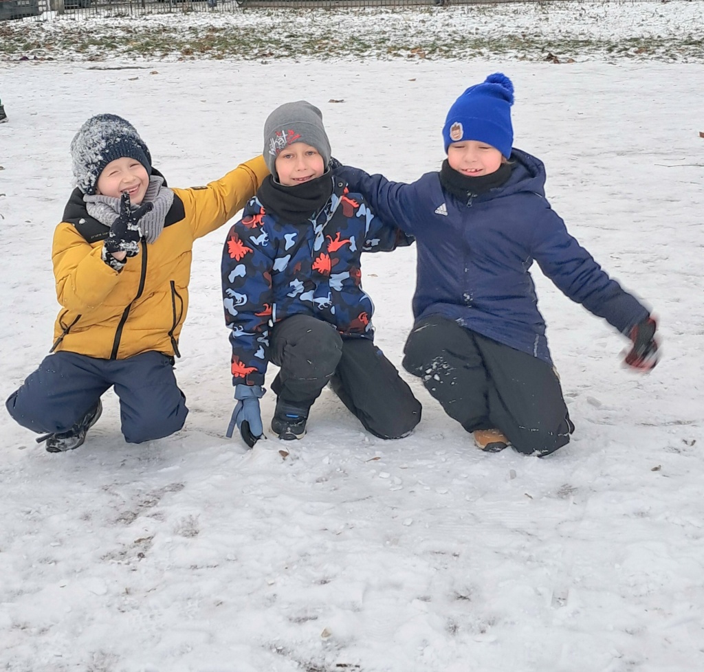 Uczniowie z klasy 1a w czasie pobytu w świetlicy wybrali się na boisko szkolne, aby w pełni wykorzystać uroki zimy. Wyjście poprzedzone było rozmową o tym, jak dbać o bezpieczeństwo podczas zimowych zabaw. Bitwy na śnieżki, lepienie bałwanów, robienie aniołków sprawiły dzieciom wiele radości. Zachęcamy wszystkich do takiej formy aktywności na świeżym powietrzu.
