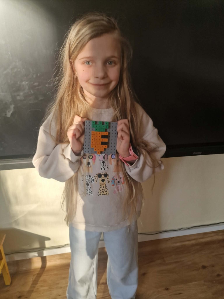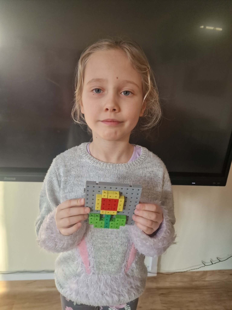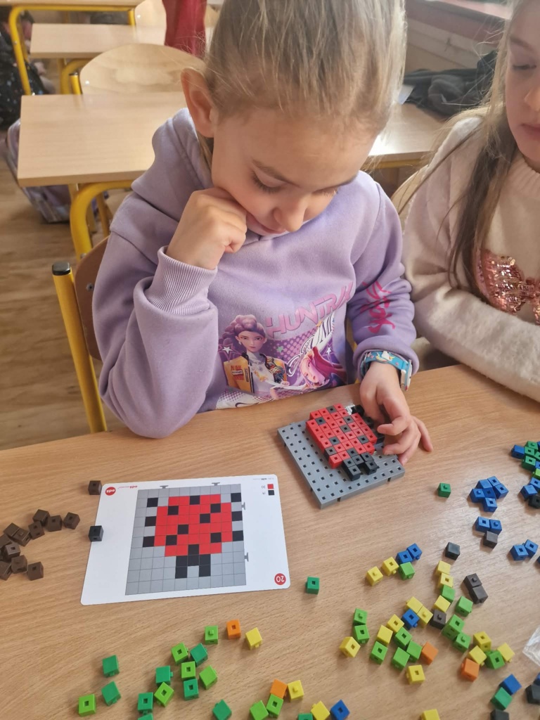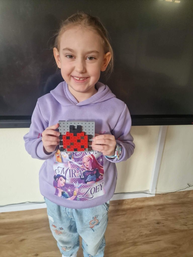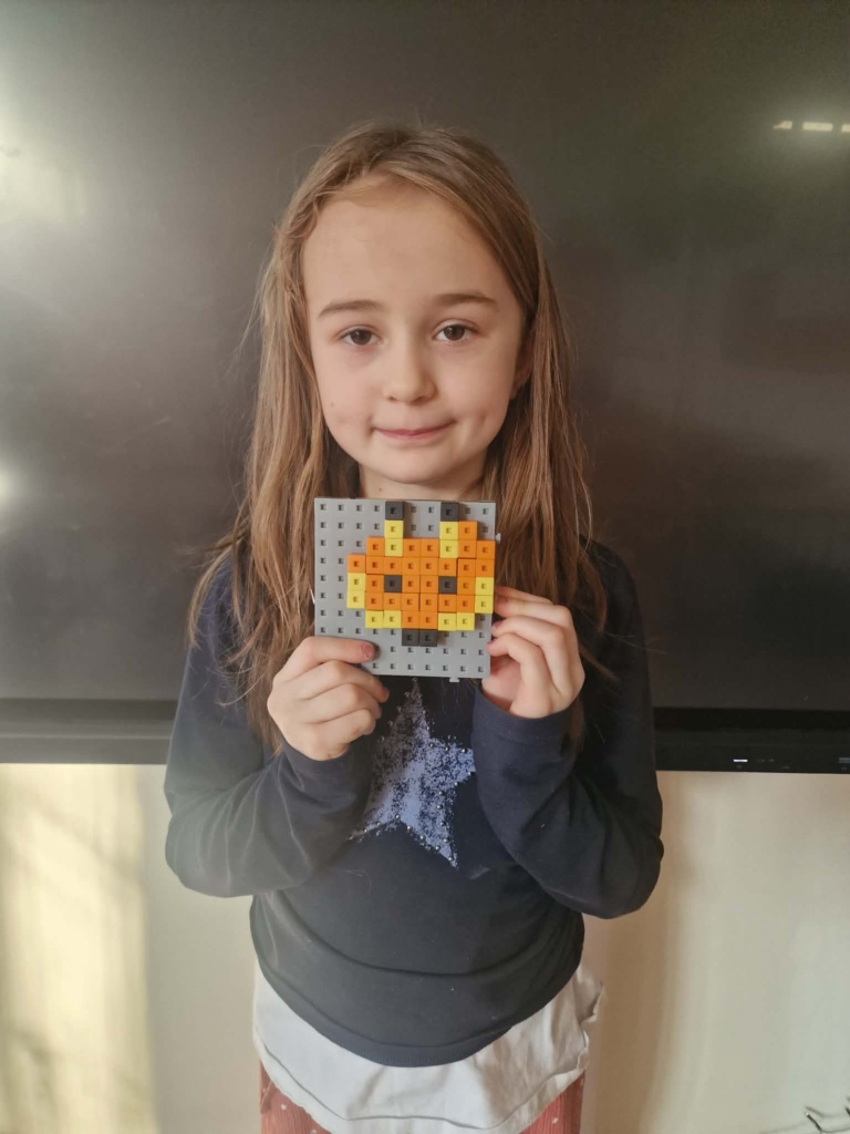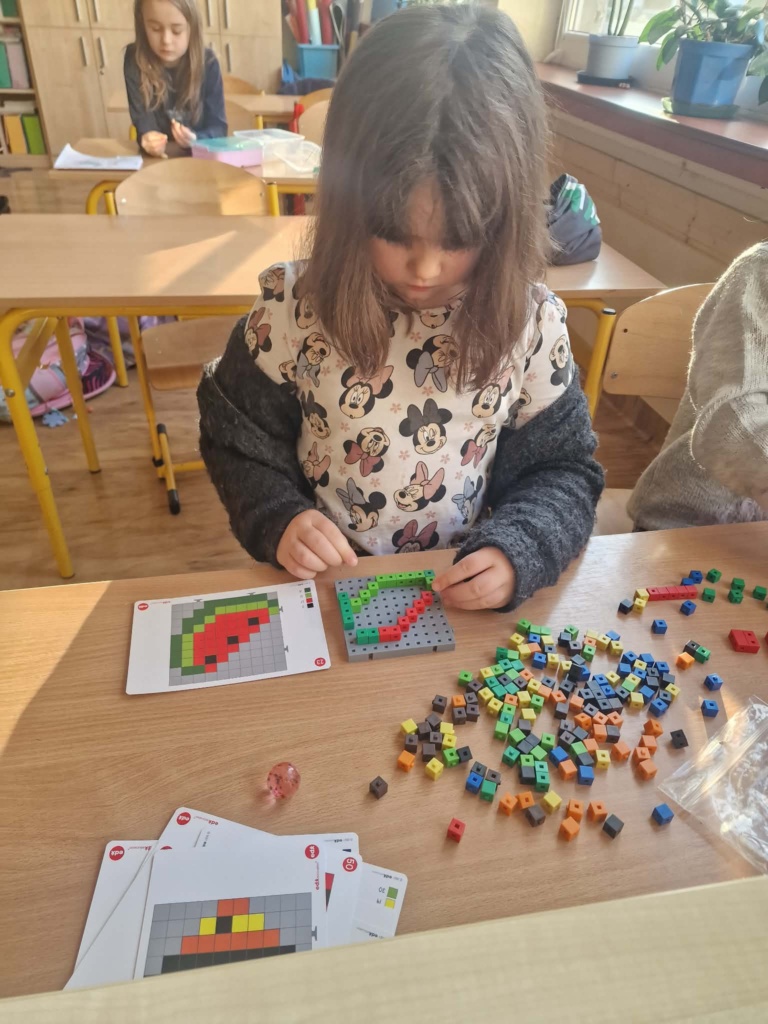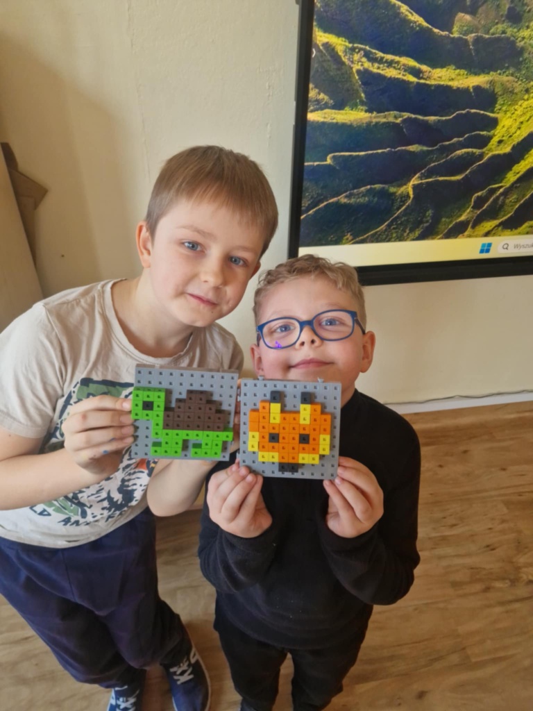 Dziś dzieci miały okazję zanurzyć się w kreatywny świat konstrukcji, pracując z wyjątkowymi mini klockami przypominającymi minecrafta. Na specjalnych planszach powstawały niezwykłe mozaiki, które nie tylko cieszyły oko, ale też rozwijały ważne umiejętności – koncentrację, precyzję i orientację przestrzenną. Z ogromnym zaangażowaniem i radością dzieci tworzyły kolorowe arbuzy, biedronki, kwiaty i lisy – każda praca była unikalna i pełna wyobraźni! To była nie tylko świetna zabawa, ale też cenne ćwiczenie wspierające rozwój manualny i logiczne myślenie. Już nie możemy się doczekać kolejnych twórczych spotkań!