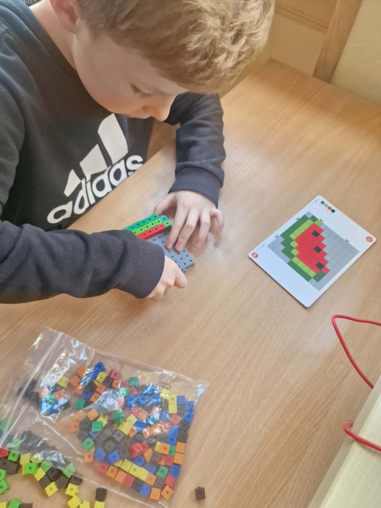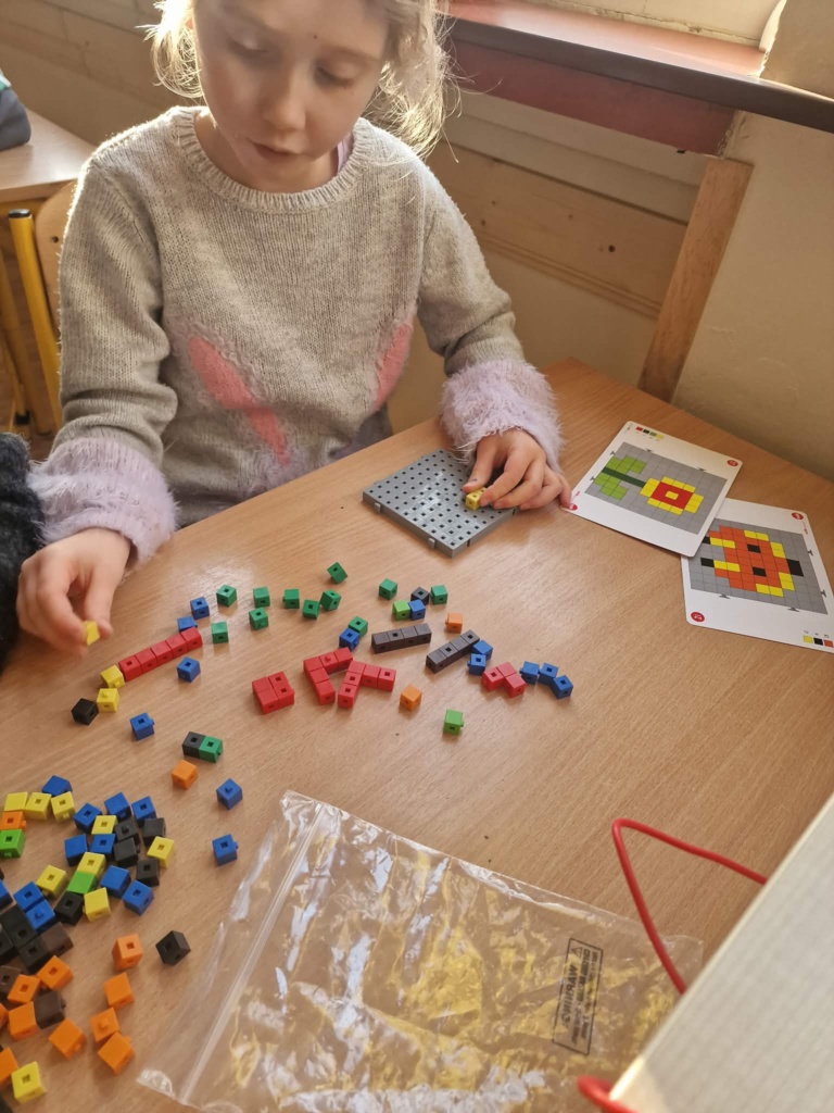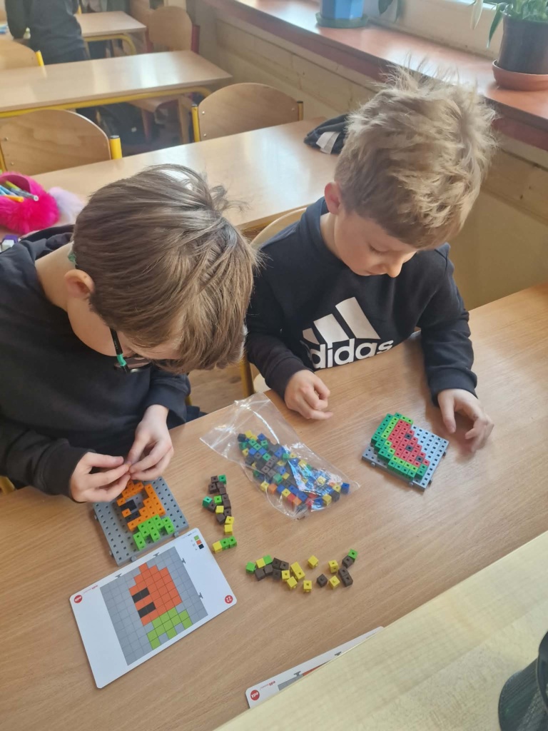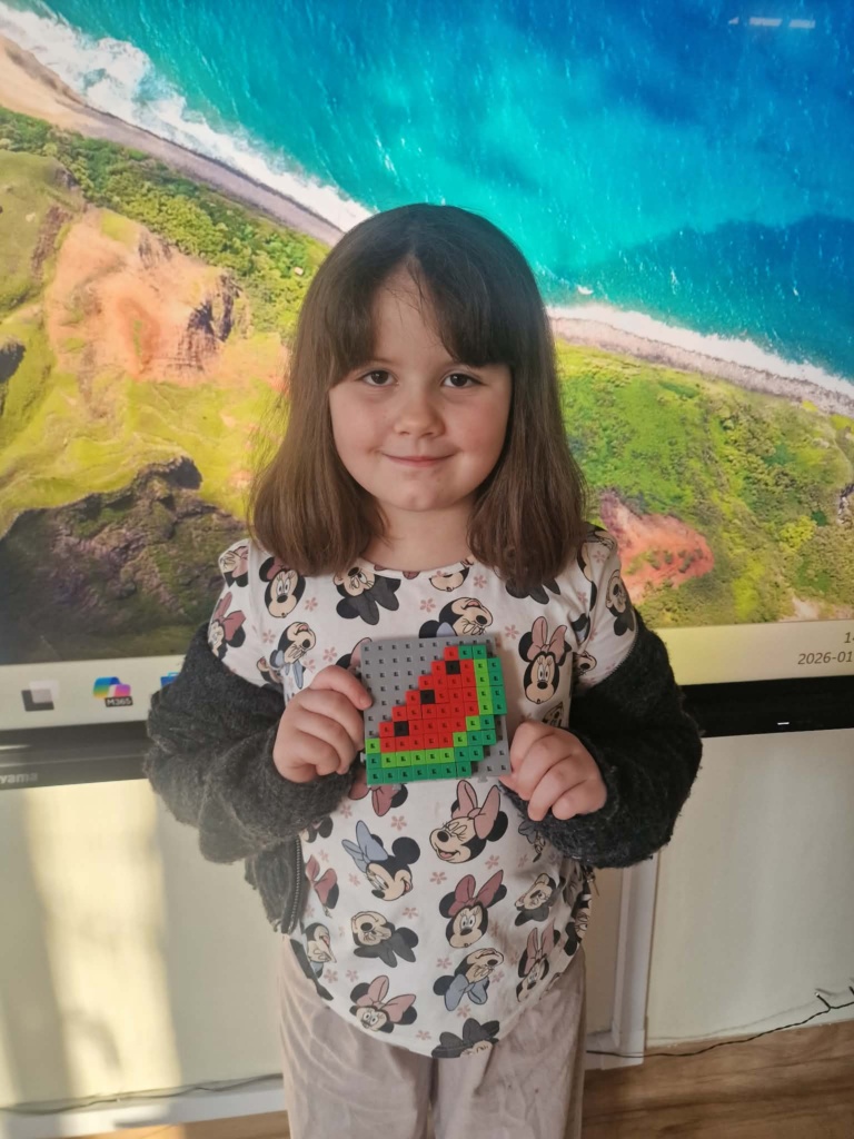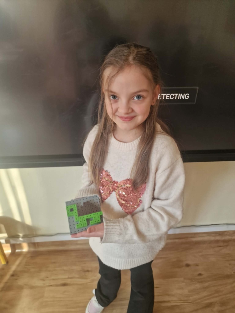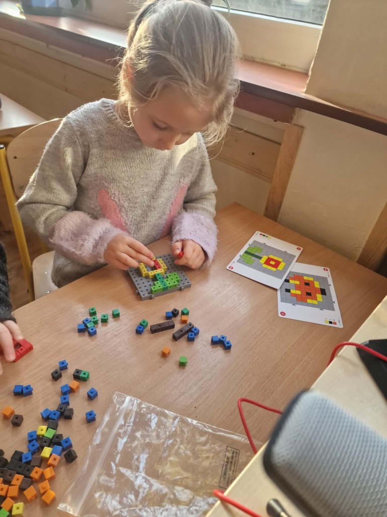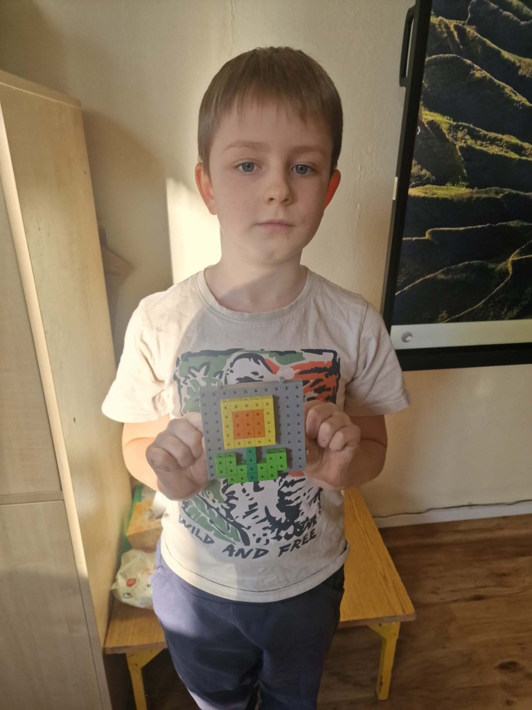 Dziś dzieci miały okazję zanurzyć się w kreatywny świat konstrukcji, pracując z wyjątkowymi mini klockami przypominającymi minecrafta. Na specjalnych planszach powstawały niezwykłe mozaiki, które nie tylko cieszyły oko, ale też rozwijały ważne umiejętności – koncentrację, precyzję i orientację przestrzenną. Z ogromnym zaangażowaniem i radością dzieci tworzyły kolorowe arbuzy, biedronki, kwiaty i lisy – każda praca była unikalna i pełna wyobraźni! To była nie tylko świetna zabawa, ale też cenne ćwiczenie wspierające rozwój manualny i logiczne myślenie. Już nie możemy się doczekać kolejnych twórczych spotkań!