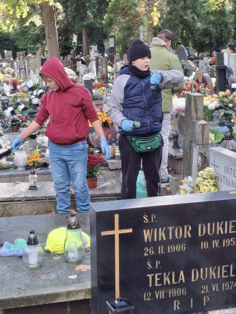 Jesienią, przed świętem Wszystkich Świętych, jak co roku udaliśmy się na Cmentarz Św. Wawrzyńca przy ul. Bujwida, aby posprzątać opuszczone groby i zapalić znicze na grobach Sybiraków – Patronach naszej Szkoły.