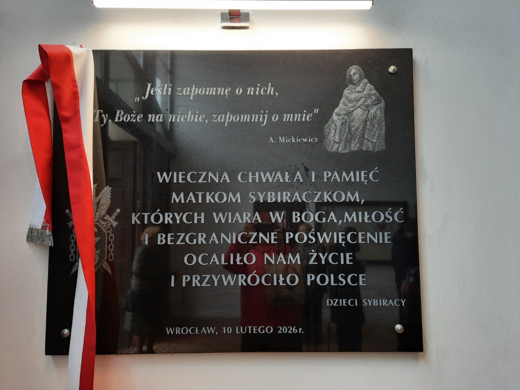 W niedzielę, 22 lutego 2026 r., Poczet Sztandarowy naszej szkoły wziął udział w uroczystej Mszy Świętej oraz odsłonięciu tablicy upamiętniającej Matkę Sybiraczkę. Uroczystości odbyły się w kościele Odkupiciela Świata we Wrocławiu.